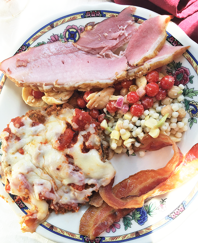 belhurst-edgars-ham-eggplant-parm-bacon-couscous-salad-tomato-salad