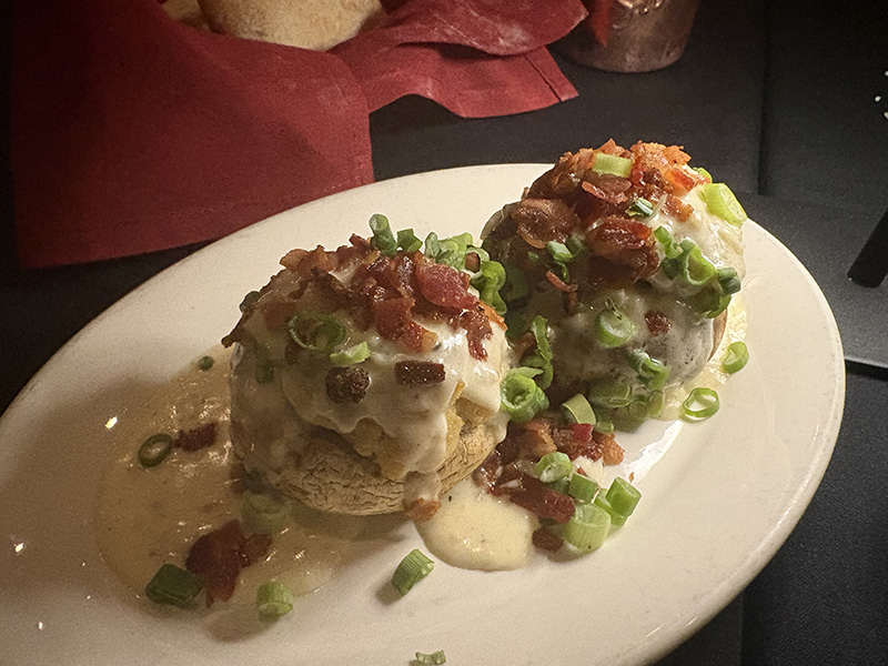 We also got the crab-stuffed mushrooms appetizer ($18.72). These were huge, two giant stuffed mushrooms heaping with crab meat. They were generous portions and did not skimp on the crab. The flavors were spot-on but the texture was missing something, maybe breadcrumbs. It was topped with bechamel and bacon and scallions, which did add a bit of texture. The heavy rich sauce on top of already rich crab meat did make for a very filling bite.