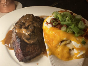 Further customization was available for the abundant side dish options. We opted for loaded mashed potatoes for our side ($4.16) – figuring you can’t go wrong with cheese, bacon and sour cream. These were truly loaded. The side dish was actually bigger than the steak (which was not small). The potatoes themselves had a good garlicky flavor and meshed well with the other toppings.