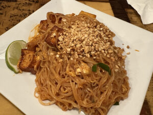We opted for the classic Pad Thai with tofu ($19), medium spice. This came out with the perfect heat and strong peanut flavor. The texture was sticky and saucy, the tofu was perfectly cooked to a nice crispy texture on the outside. The tofu was not too moist when you bit into each chunk. The whole dish was flavored really well with seasoning and the components of the dish. It was composed for you, meaning this wasn’t a make-your-own dish where the sprouts, lime and chili flakes were all separated. Instead, they were all incorporated into the dish together, each bite chef-curated and lived up to the high expectations we had for the Pad Thai. We even remarked that this would be our go-to spot for the dish in the Central New York area going forward.