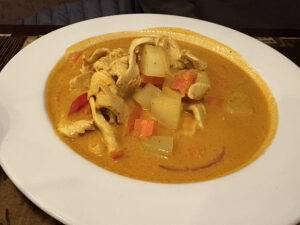 We also ordered the yellow curry with chicken ($19), medium spice, served with white rice. The flavors in this dish too were well blended together, yet you were able to get the distinct taste of each of the ingredients: the chicken, the potatoes and the carrots. The taste of each came yet it was a balanced dish with appropriate spice level. This was also very yummy.