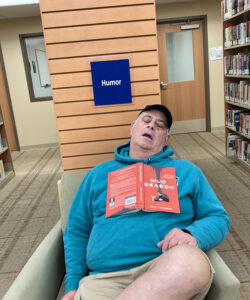 Fans of humor writer Jeff Kramer should not be surprised to learn that he staged this photo shoot at the Onondaga Free Library, a sign of his sharp wit. “It’s a monument to procrastination,” he said of his debut novel, “Mud Season,” which took 25 years to be complete.