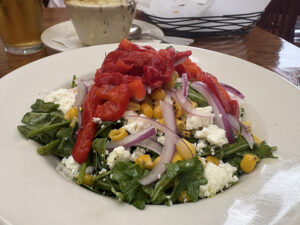 The small portion of the salad was actually quite large, and covered with toppings, including roasted red peppers, queso fresco and corn. I appreciate an arugula-based salad, with the base layer providing such a peppery and fresh flavor. The toppings and dressing were the perfect amount and accentuated the flavors.