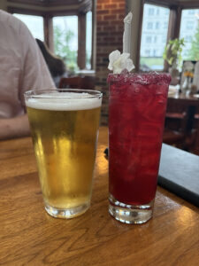 We started with Hibiscus Elixir cocktail ($11) and a Beer Tree lager ($6), from a brewery in Binghamton. The lager was typical — light and crisp. The Hibiscus Elixir was a highlight of the meal: not too sweet, great hibiscus and berry flavors. If you’ve ever enjoyed hibiscus tea, you’d enjoy this floral, herbaceous drink, garnished around the rim with hibiscus sugar and a flower.
