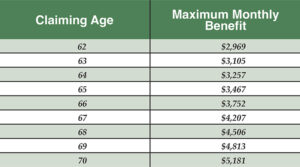Social Security’s Max Benefit for Everyone 62 to 70