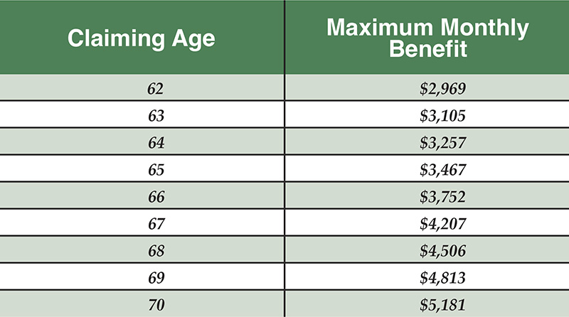 Social Security’s Max Benefit for Everyone 62 to 70